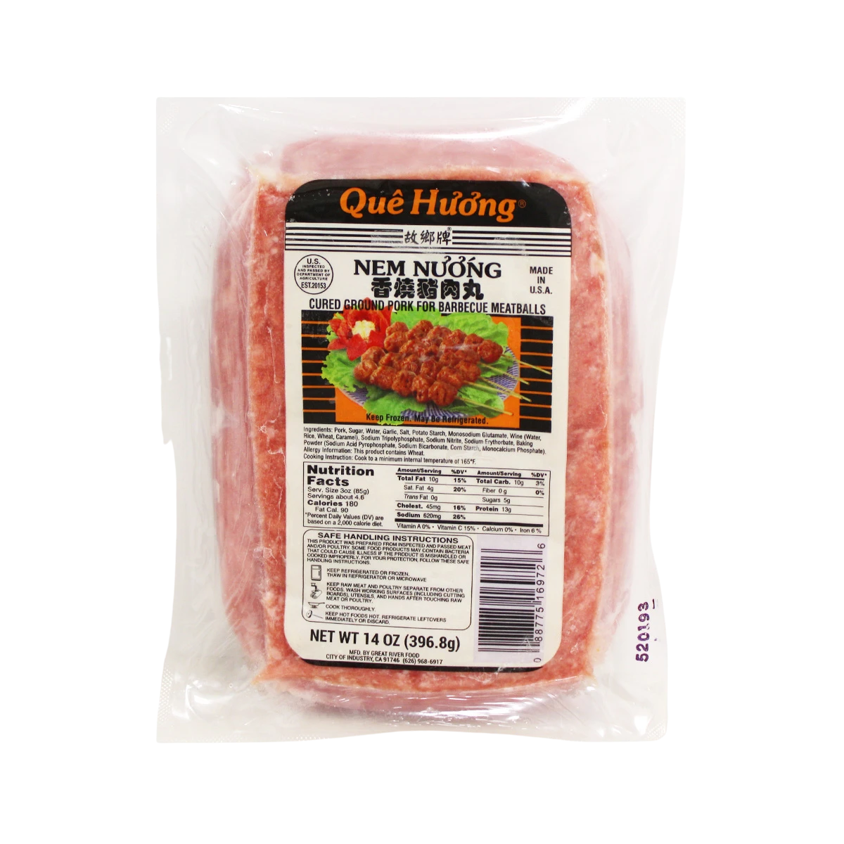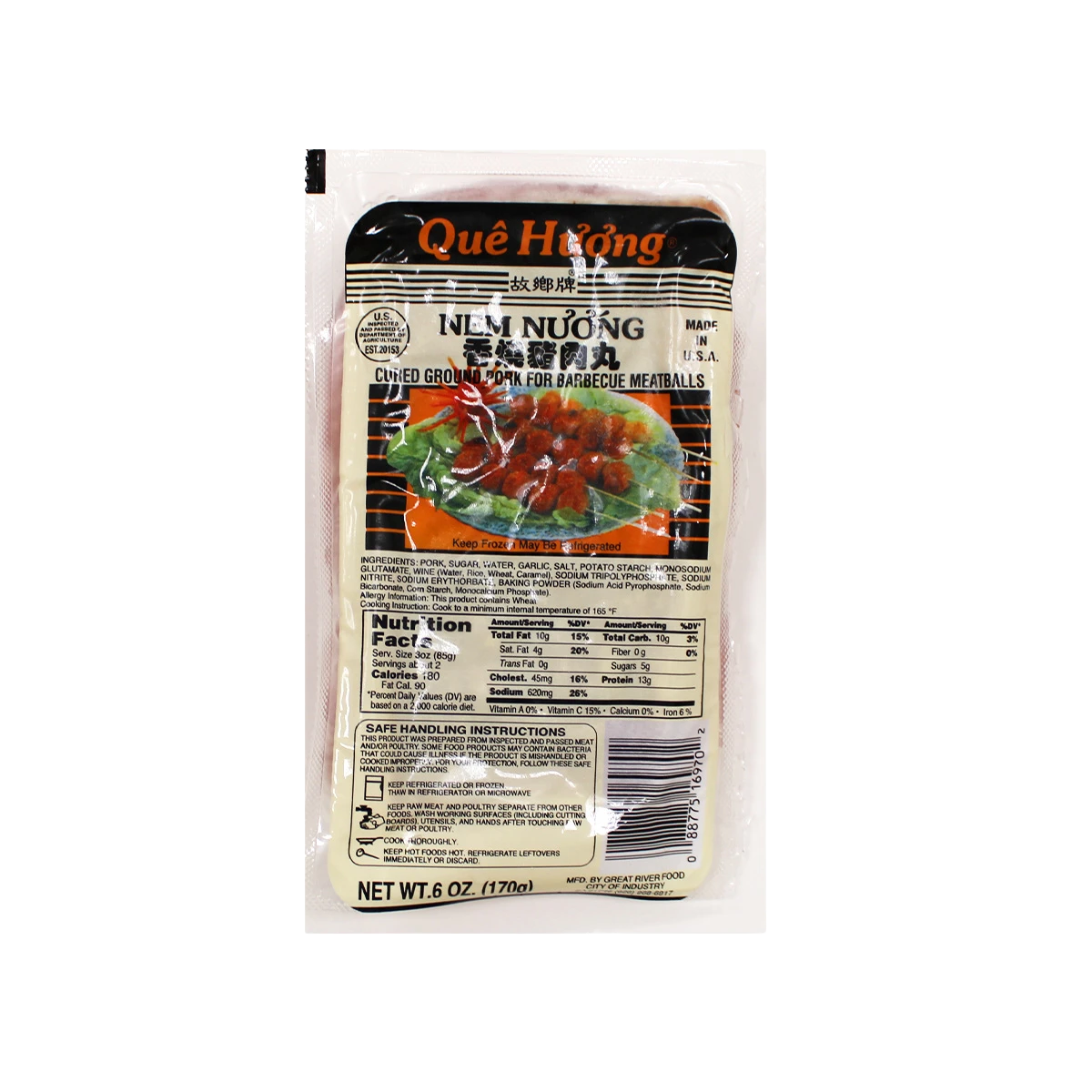 True Safety: Que Huong Cured Pork for BBQ is completely manufactured and packaged at our USDA and FDA registered plants using nutritious ingredients that do not contain trans-fats. We continually strive to develop better and healthier food, using better and healthier ingredients in order to provide our customers a satisfying experience with our products.